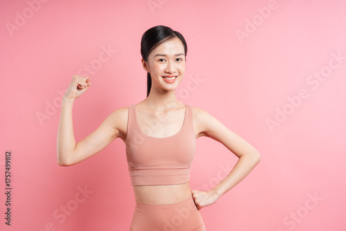 background, woman, girl, activewear, fitness, health, wellness, confidence, smiling, indoor, studio shot, portrait, strength, exercise, sports bra, leggings, flexible, youthful, healthy, well-being, motivational, beauty, asian ethnicity, long hair, ponytail, modern, young adult, one person, female, strong, sporty, toned, slim, people, person, asian, korean, japanese, malaysian, indonesian, vietnamese, thai, chinese