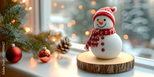 snowman, christmas, winter, snow, holiday, christmas, decoration, toy, hat, cold, foulard, happy, santa, new year, snowball, fun, object, red, ball, celebration, tree, new, gift, cap, celebrate, window, bokeh, season, seasonal, background, background, wallpaper, december, jan, february, winterly, chill, scenic, glacé, cosy, claus, year, frost, evergreen, snowflake, card, cartoon, greeting