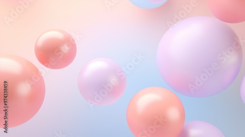 A soft and dreamy background with pastel-colored spheres floating in a light blue and pink gradient.