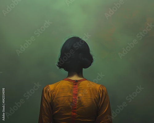 back, person, yellow, traditional, outfit, green, background, solemn, aethereal, tradition, mystery, culture, clothing, portrait, artistic, mood, texture, simplicity, fabric, quiet, elegance, fashion, style, atmosphere, draped, identity, hidden, serene, contemporary, grace, silhouette, modesty, contemplation, ethnical, artistry, enigma, timeless, heritage, peaceful, meditative
