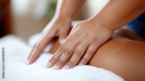 A soothing massage therapy session featuring hands gently massaging a person's back, showcasing relaxation and wellness in a serene environment.