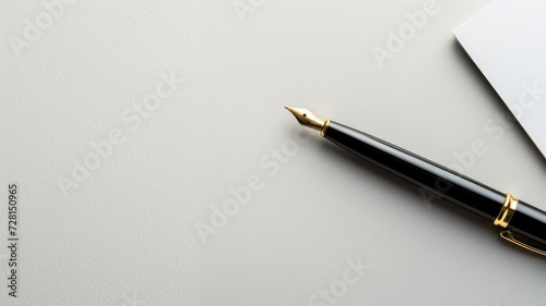 A sophisticated fountain pen lies on a clean white paper