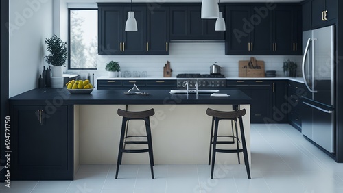 A spacious and well-lit kitchen mockup in contrasting colors Model #001