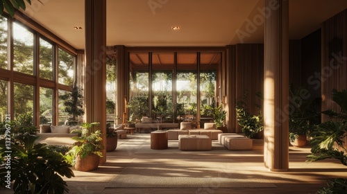 A spacious open living space with potted greenery enhancing the natural aesthetic.