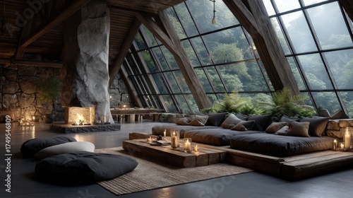 rustic, living, room, fireplace, stone, forest, window, seating, comfortable, candle, wooden, natural, cosy, interior, design, modern, calm, relaxing, home, fire, lighting, zen, plant, decor, area, space, ambience, elegant, warm, large, pillow, furniture, beautiful, colourful, bright, creative, stylish, professional, decorative, vibrant, stunning, amazing, marvellously, fantastic, gorgeous
