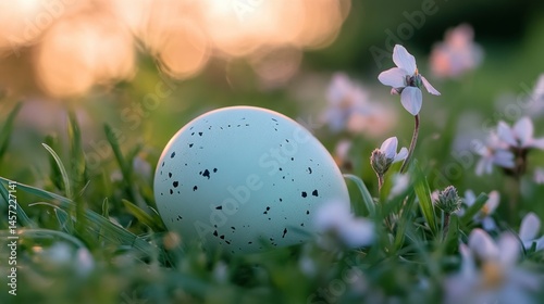 egg, speckled, blue, green, grass, flower, floral, white, small, spring, outdoors, nature, macro, close, detail, garden, sunlight, field, light, background, bokeh, delicate, fragile, vibrant, growth, life, new, season, easter, freshness, calm, serenity, pattern, spotted, surface, colours, shape, soft, natural, bloom, stem, leaf, bud, beauty, flora, springtime, closeup