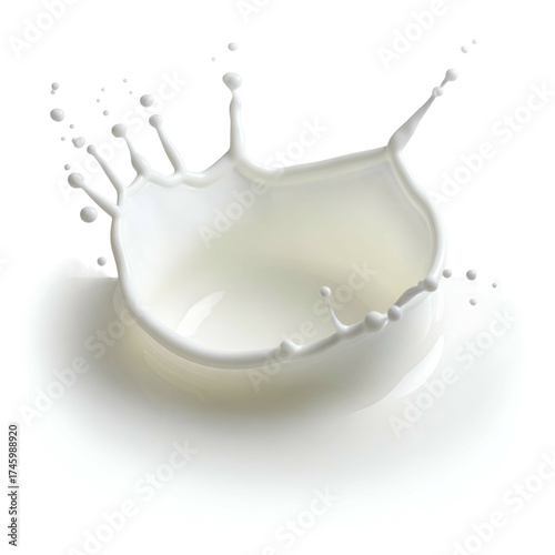 A splash of white liquid forms a crown shape, creating a droplet with a shadowed background