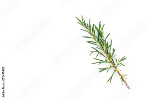 A sprig of rosemary with delicate leaves and subtle texture, isolated on pure white, botanical, texture