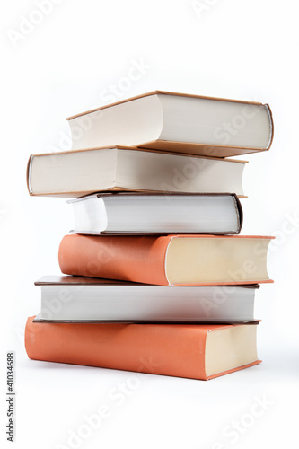 A stack of books on a white background.