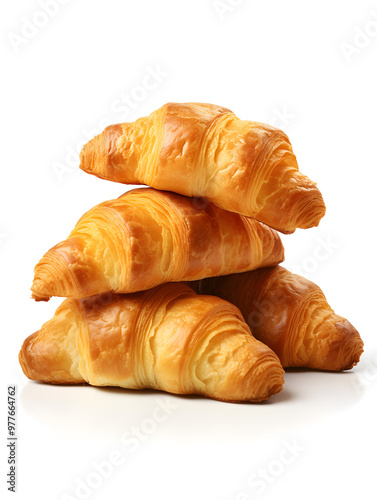 A stack of fresh baked croissants on white background