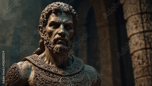 A statue of Argos, the thousand-eyed sentinel, his body covered in countless small eyes, watching both the mortal world and the underworld
