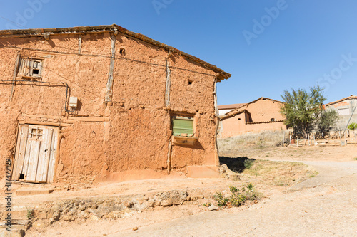 a street with old houses made of clay in Villalvaro village, municipality of San Esteban de Gormaz, province of Soria, Castile and Leon, Spain