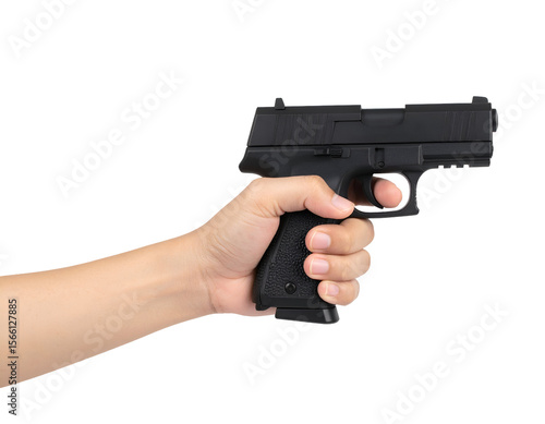 hand, handgun, security, control, firearm, gun, weapon, handgun, trigger, grip, finger, arm, holding, human, person, adult, protection, defense, self, power, danger, crime, police, military, enforcement, law, safety, training, target, shooting, sport, equipment, object, metallic, black, modern, contemporary, action, threat, violence, justice, force, dark, studio, detail