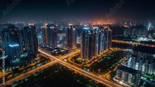 smart, city, night, futuristic, glowing, building, aerial, view, light, road, skyline, urban, modern, technology, architecture, infrastructure, neon, digital, innovation, city landscape, nightscape, metropolis, skyscraper, illuminated, high technology