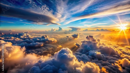 A stunning aerial view of the sky and clouds from an airplane, aerial, view, sky, clouds, airplane, aviation, travel, nature