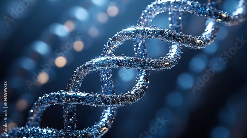 A stunning representation of a DNA helix glistening with blue shimmering lights, highlighting the beauty and complexity of genetics and molecular biology.