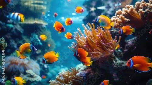 A stunning view of a lively underwater world filled with colorful fish and coral reefs.