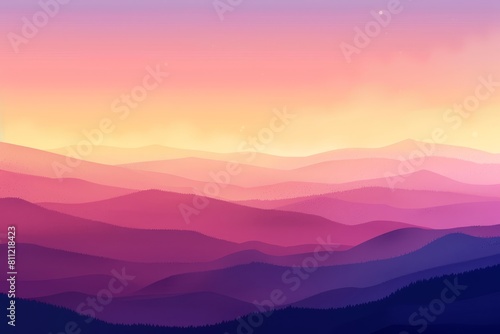 A stunning view of a mountain range illuminated by the warm hues of a sunset in orange, pink, and purple tones, A gradient of orange, pink, and purple hues in the evening sky