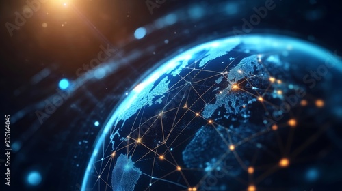 A stunning view of Earth illuminated with digital connections, representing technology and global communication networks.