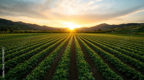 A stunning vista of sunlit fields stretching towards the horizon at dusk, portraying the beauty of nature's cycles and evoking a sense of tranquility and connection to earth.