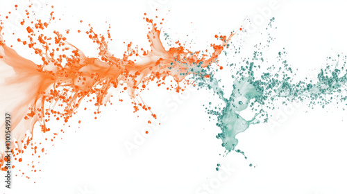 A stunning watercolor explosion, delicate teal and warm orange pigments dispersing in water, intricate organic patterns forming