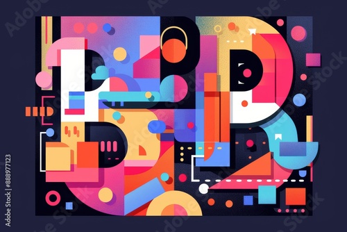 A stylish and modern illustration of the alphabet letter B with geometric shapes and bright colors creating a visually appealing and dynamic look. Ideal for graphic design projects and branding.