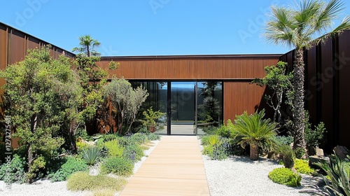 A stylish backyard fence with an aluminum gate, enhancing the overall design of the space