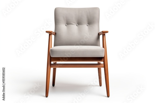 A stylish mid-century modern armchair with a gray fabric seat and wooden frame, perfect for any contemporary space.