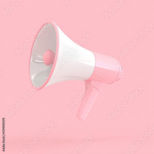 A stylish pink megaphone on a soft pink background, symbolizing communication and announcements.