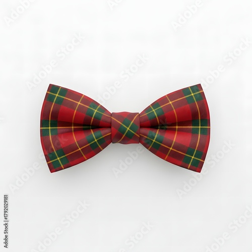 A stylish red tartan bow tie with a classic green and yellow plaid pattern, perfect for formal events, weddings, or festive holiday celebrations