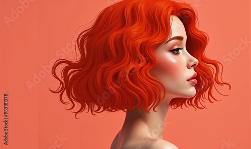 fashion, beauty, portrait, woman, red hair, illustration, lifestyle, wavy hair, make-up, artistic, trendy, profile, creative, vibrant, youth, modern, aesthetic, graphic design, advertising, digital artwork, confidence, hair care, salon, cosmetic, design, inspiration, contemporary, personality, branding, photo, art, femininity, elegance, glamour, visual arts, coiffure, modern art, portraiture, texture, style, color palette