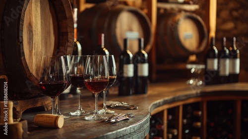 stylish, wine, cellar, tasting, tool, aged, barrel, ambience, arranged, winery, elegance, style, photo, sophistication, tradition, high, quality, image, capturing, atmospheric, setup, closeup, perspective