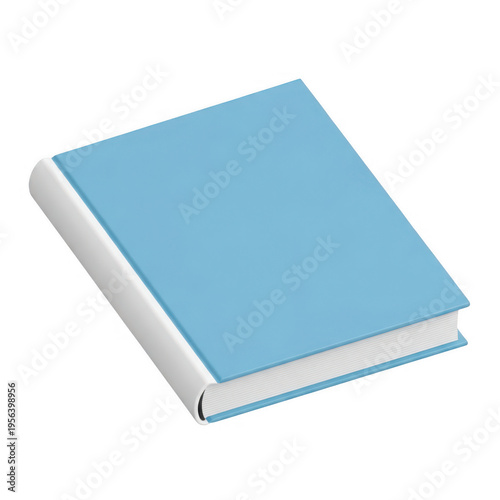 A stylized depiction of a closed blue notebook resting on a flat surface isolated on transparent background