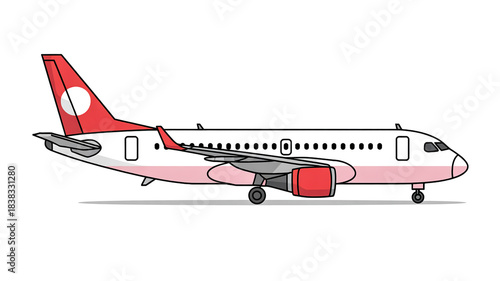A stylized illustration of a commercial passenger aircraft in a minimalist design style