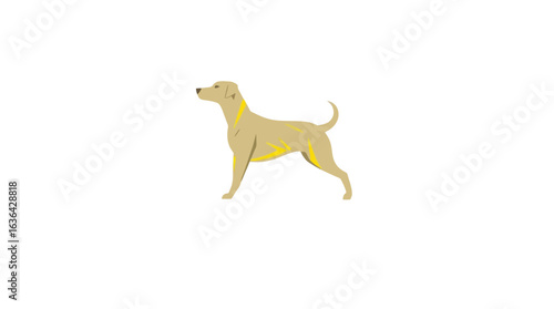 A stylized illustration of a tan dog standing gracefully on a white background.