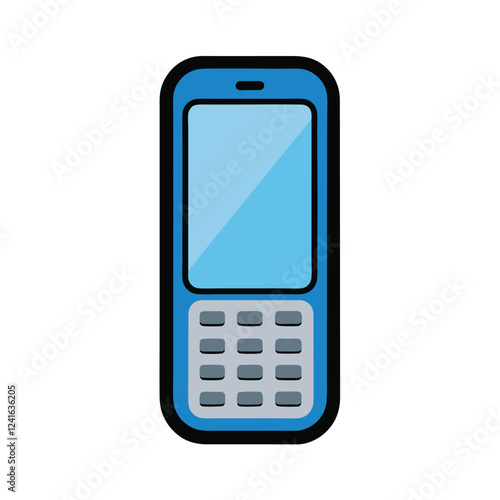 A stylized smartphone illustration featuring a blue screen and simple design elements.