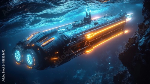 deep sea, approaching, rock, surrounded, high technology, mysterious, navigation, ocean, exploration, aquatic, marine life, advanced technology, vessel, robotic, submersible, science fiction, futuristic, unmanned, ocean floor