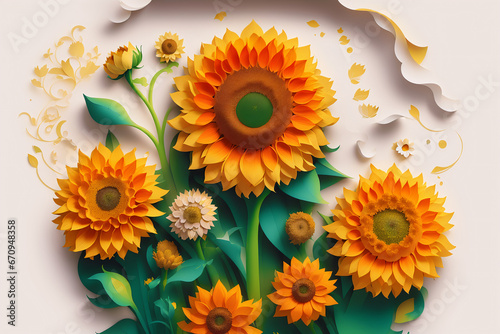 A Summer concept. A Captivating Papercut sunflowers. Sunflower Symphony. Papercut illustration. Generative AI