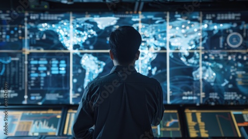 A supply chain expert using a digital map to monitor global shipping lanes in real-time