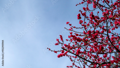 blossom, bloom, flowering, spring, pink, branch, tree, canopy, flocked, vibrant, flower petals, natural, flora, botanical, outdoors, sky, overcast, contrast, lush, abundant, delicate, radiant, soft, scenic, landscape, airy, fresh, organic, serene, pastel, textured, growth, renewal, nature, treetop, harmony, beauty, saturation, foliage, flourishing, seasonal, tender, bright, ornamental
