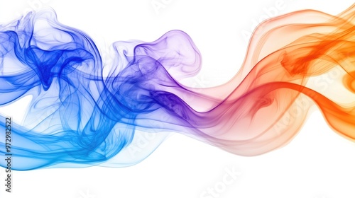 A swirling mix of blue, orange, and purple smoke against a clean, white background, creating a bold and striking contrast with its fluid movement.
