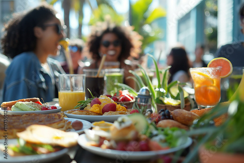 lifestyle, friends, group, lively, together, friendship, smiling, social, people, talking, happiness, drink, full, fun, party, enjoying, man, sitting, caucasian, woman, young, eating, eatery, dinner, food, summer, lunch, meal, table