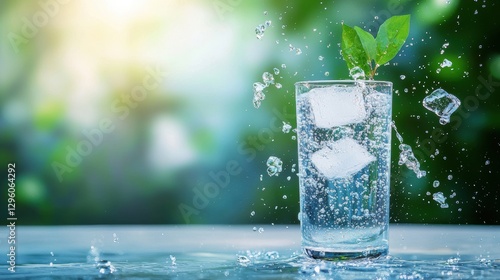 A tall glass of ice cold water with condensation dripping down the sides, set against a bright and refreshing background.