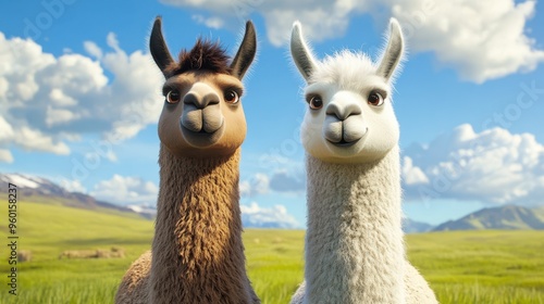 tan, white, side, racked, animal, fur, grazing, herd, nature, wildlife, mammal, pair, side by side, pasture, friendly, domestic, andean, farm animal, calm, companion, spotted, environment, rustic, rural, portrait, gentle, species, duet, view, setting, scene, natural, landscape, soft, exotic, display