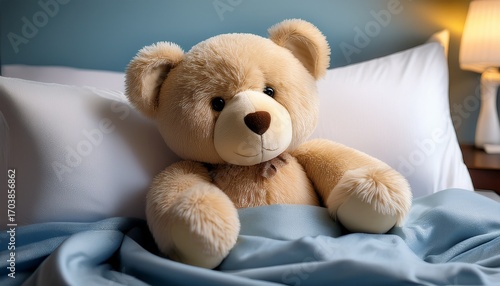 bear, bed, toy, bedchamber, teddy, sleep, children, childhood, home, cute, bedtime, children, pillow, teddy bear, baby, little, blanket, relax, white, small, background, stuffed, comfort, dream, morning