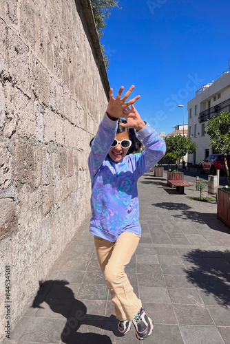 female, teenage, person, young, beautiful, city, street, attractive, urban, lifestyle, travel, caucasian, fashionable, vacation, holiday maker, tour tourism, lady, pretty, european, outdoors, portrait, style, summer, town, walking, casual attire, trip, model, adult, architecture, background, holiday, white, europa, building, brunette, smartphone, red, holding, hat