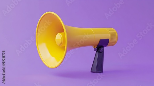 A three-dimensional loudspeaker, symbolizing advertising or propaganda. The horn loudspeaker, or megaphone, is set against a violet background, ideal for conveying advertising messages.