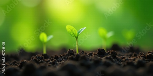 A Tiny Sprout Emerging from Rich Soil, Embracing the Warmth of Sunlight, Symbolizing Growth and Renewal in a Verdant Setting