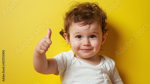 toddler, baby, thumb up, infant, children, approval, yellow background, boy, happy, encouragement, diverse, diaper, smile, looking, adorable, smiling, face, little, young, cute, fun, finger, preteen, like, ok, agree, yes, gesture, expression, hand, positive, education, learning, school, success, isolated, childhood, banner