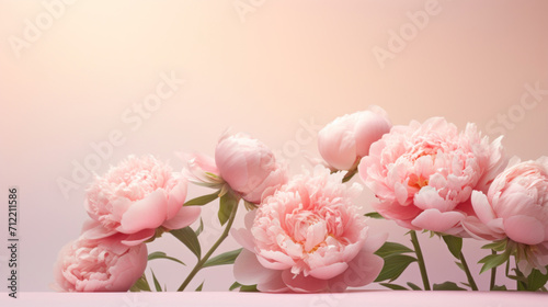 A tranquil arrangement of full blooming pastel pink peonies against a soft background.